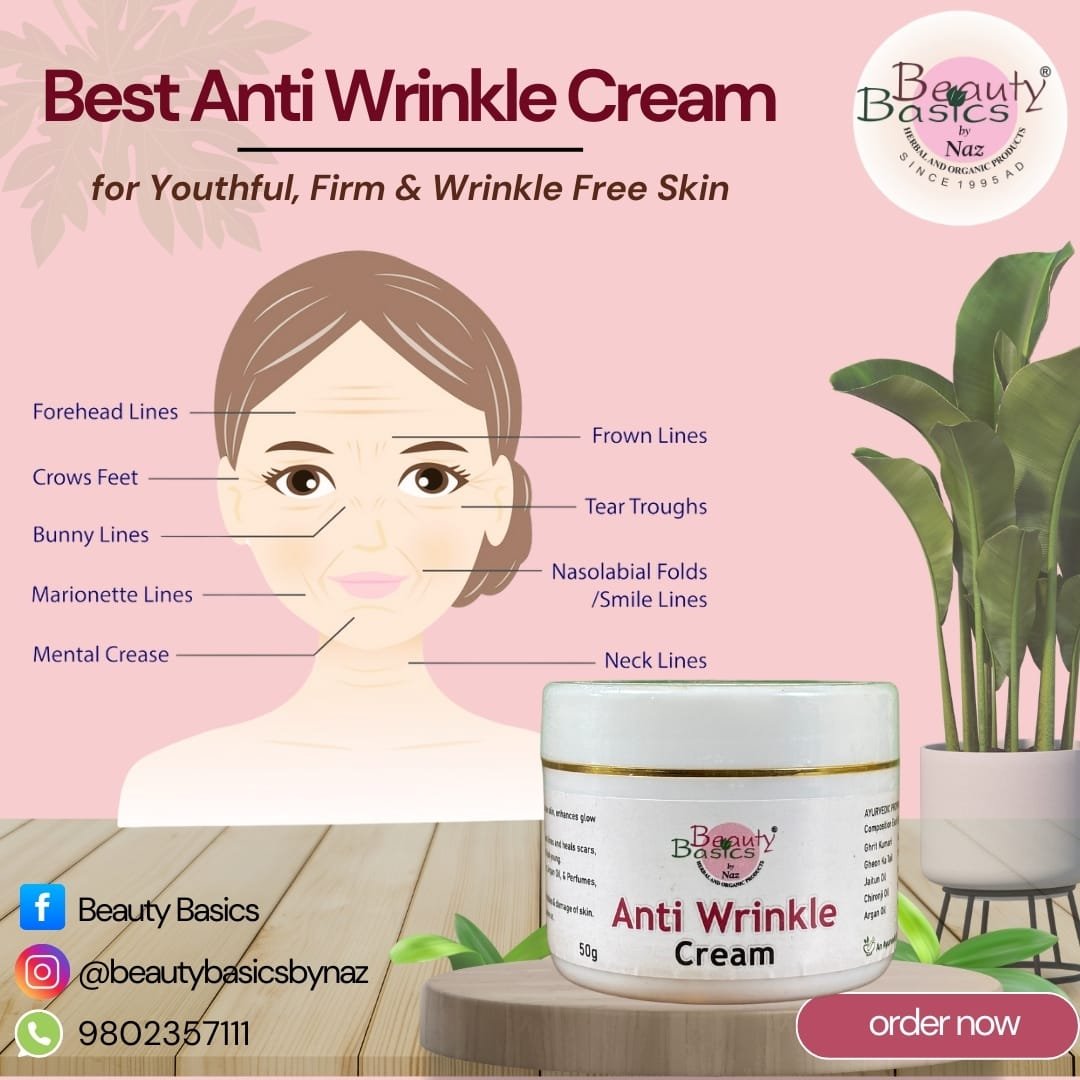 Beauty Basics’ Anti Wrinkle Cream” is For Dry Skin & Wrinkles For those below 40 years old. Providing Relief from wrinkles, it minimizes expression lines and heals scars. Finally, it maintains the Skin’s pH oil balance to make it look young.