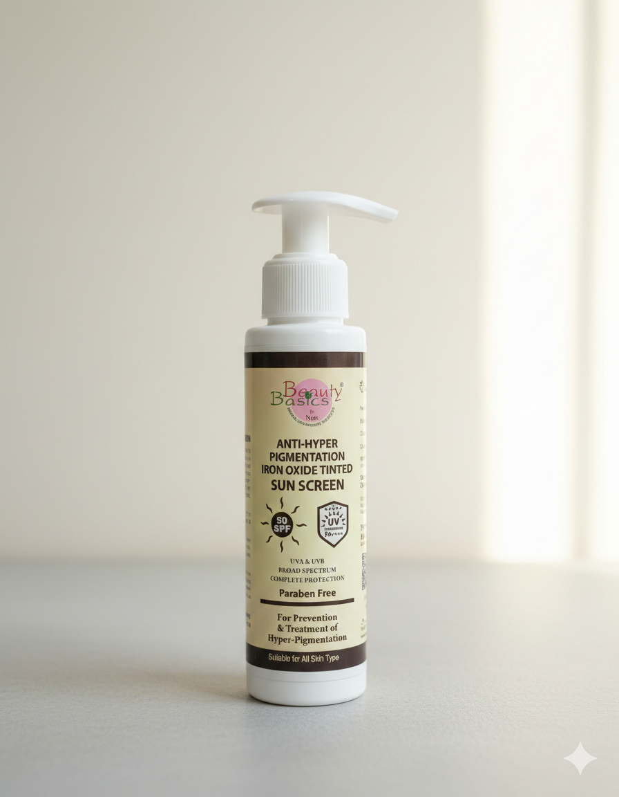 Anti-Hyperpigmentation Iron Oxide Tinted Sunscreen is a hyperpigmentation treatment sunscreen that protects skin from Broad Spectrum UVA & UVB harmful rays and radiation that causes short-term and long-term hyperpigmentation of the Skin. It also protects skin from Blue Rays emitted from electronic gadgets, lights, and digital devices.