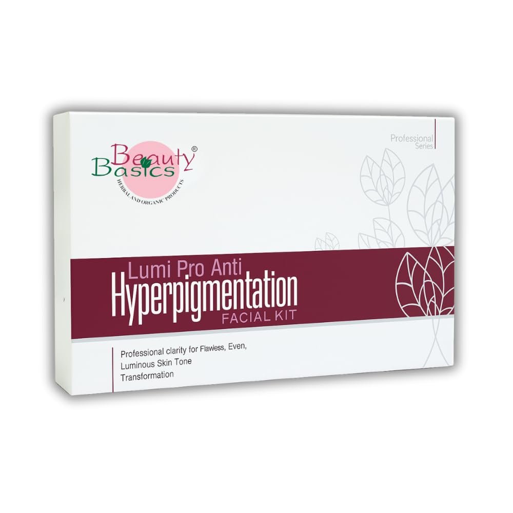 Beauty Basics Lumi Pro Anti-Hyperpigmentation Facial Kit is a professional 7-step treatment designed to target pigmentation, dark spots, and uneven skin tone. Powered by potent actives like Niacinamide, Hydroquinone, Retinoids, and Vitamin C, this advanced formula works synergistically to brighten, repair, and rejuvenate dull skin. The kit begins with Cleansing Actives that purify the pores, followed by a blend of Treatment Actives, Photo Blend Lotion, and Scrub that exfoliate and boost skin renewal. The Massage Gelatin and Massage Cream restore hydration and firmness, enhancing skin elasticity. The Treatment Pack helps fade pigmentation and evens out complexion, while the final Healing Serum locks in moisture and repairs skin barriers.